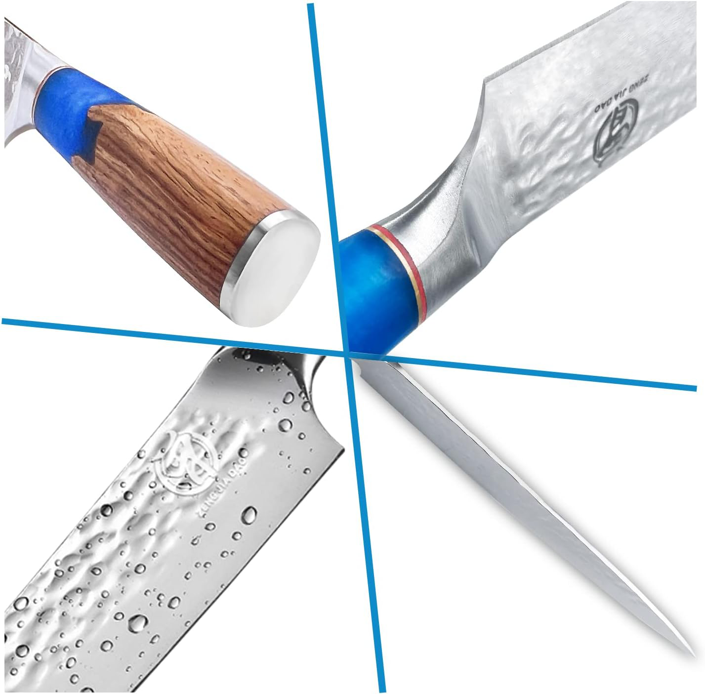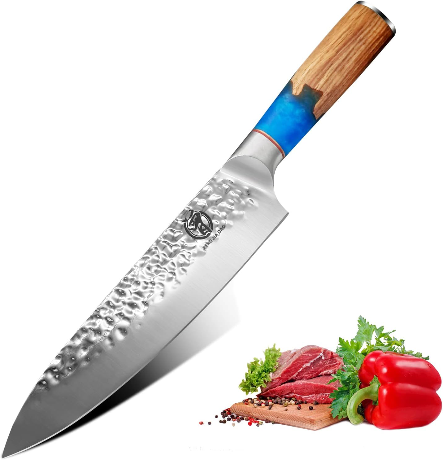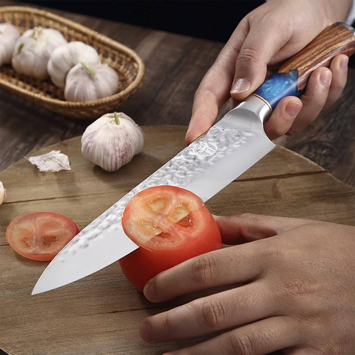 This 8 inch Chef's Knife features a Pakkawood and Resin handle. creating a smoother and more comfortable grip for precision cuts. Its sharp and solid double bevel stainless steel blade makes slicing. dicing. and chopping efficient and effortless. The perfect choice for professional and home cooks.