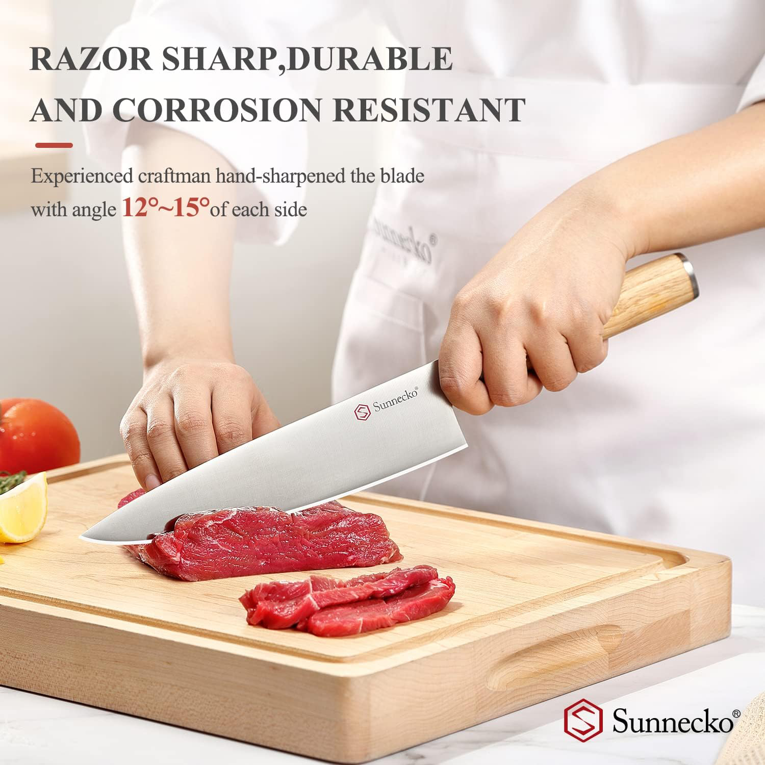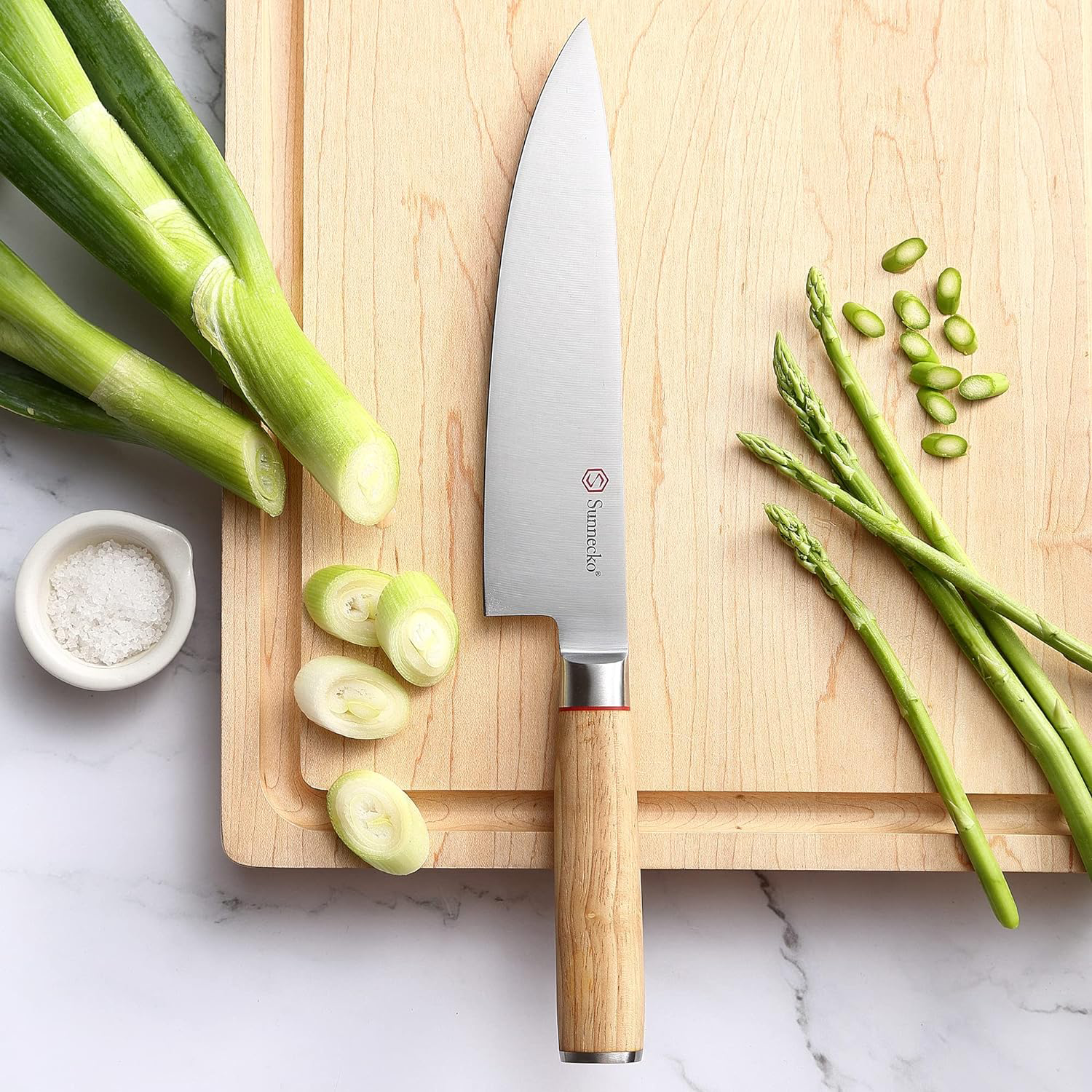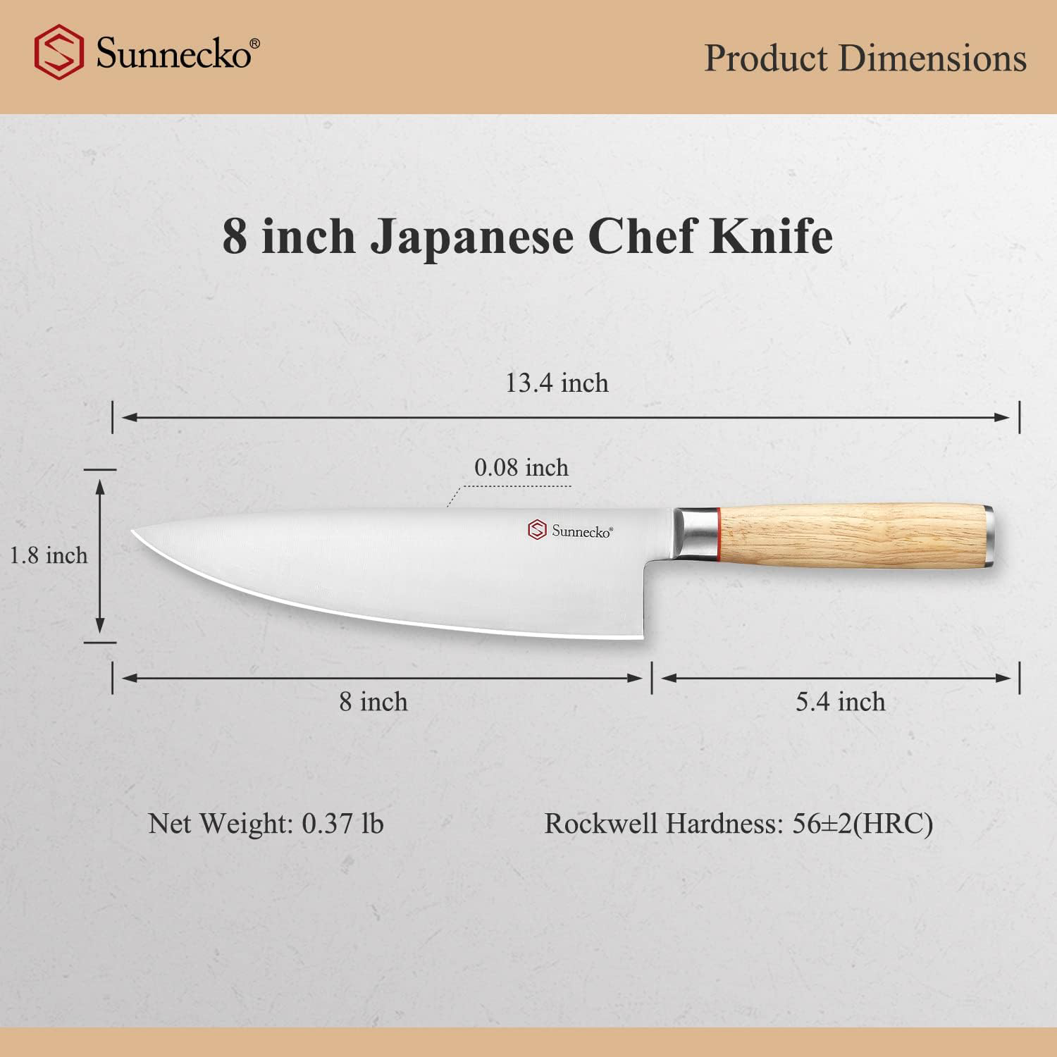 This Japanese Chef Knife is perfect for chefs of all skill levels. The 8 blade is made of high-carbon stainless steel for added durability and sharpness. The natural white oak handle is ergonomically designed for a comfortable. secure grip. Enjoy precision and effortless cutting with this professional-grade chef knife.