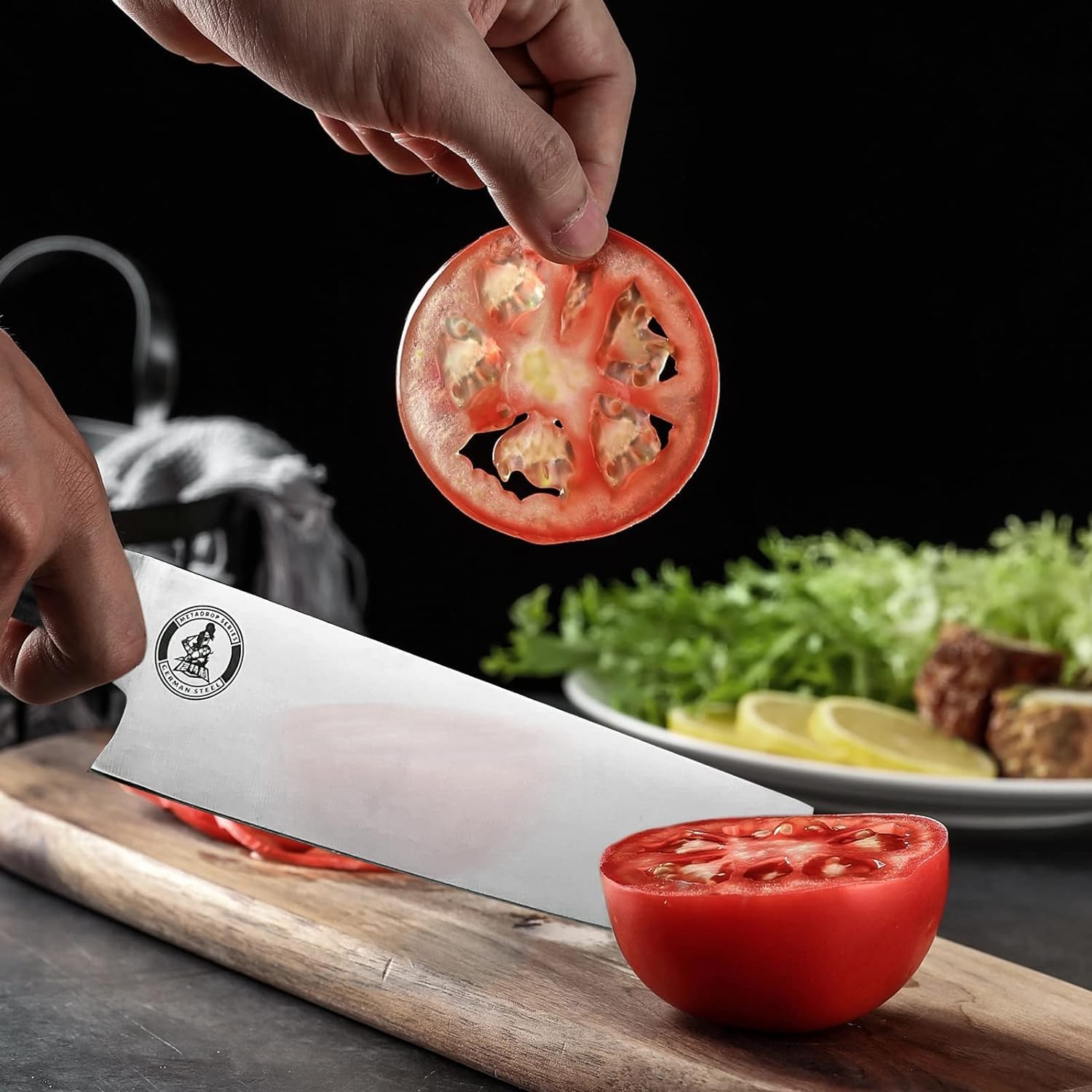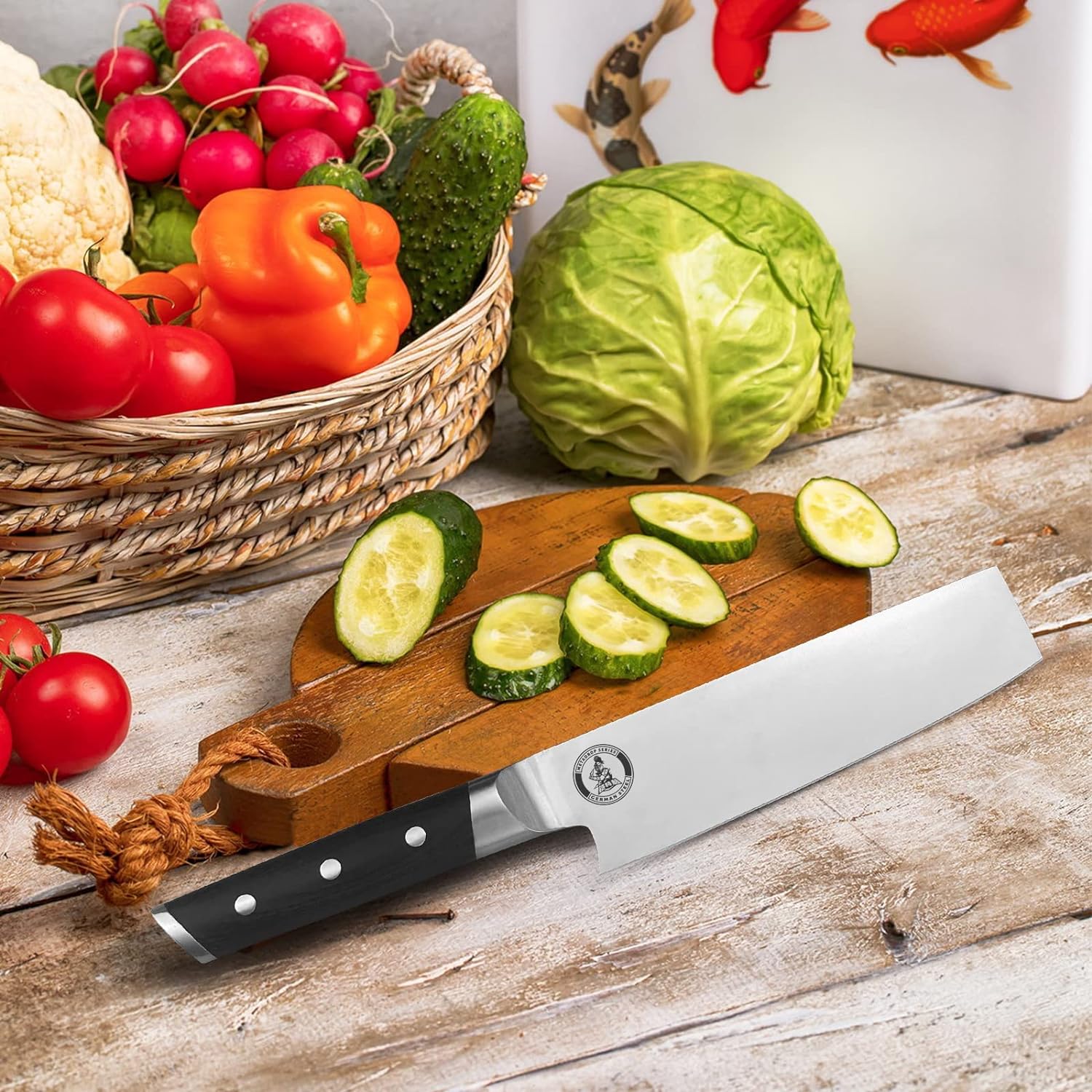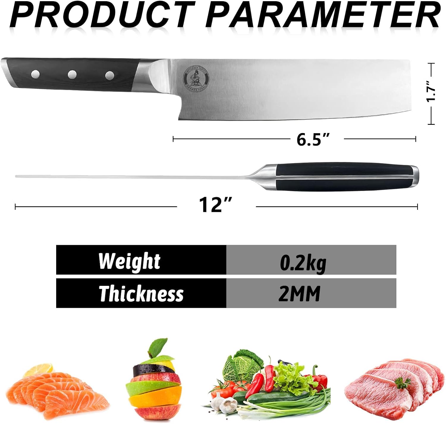 Crafted from high-quality German stainless steel. the KD Nakiri Chef Knife is a must-have for any kitchen. With its precision and durability. this knife effortlessly slices through fruits. vegetables. and more. Comes with a sleek gift box. making it the perfect gift for any cooking enthusiast.
